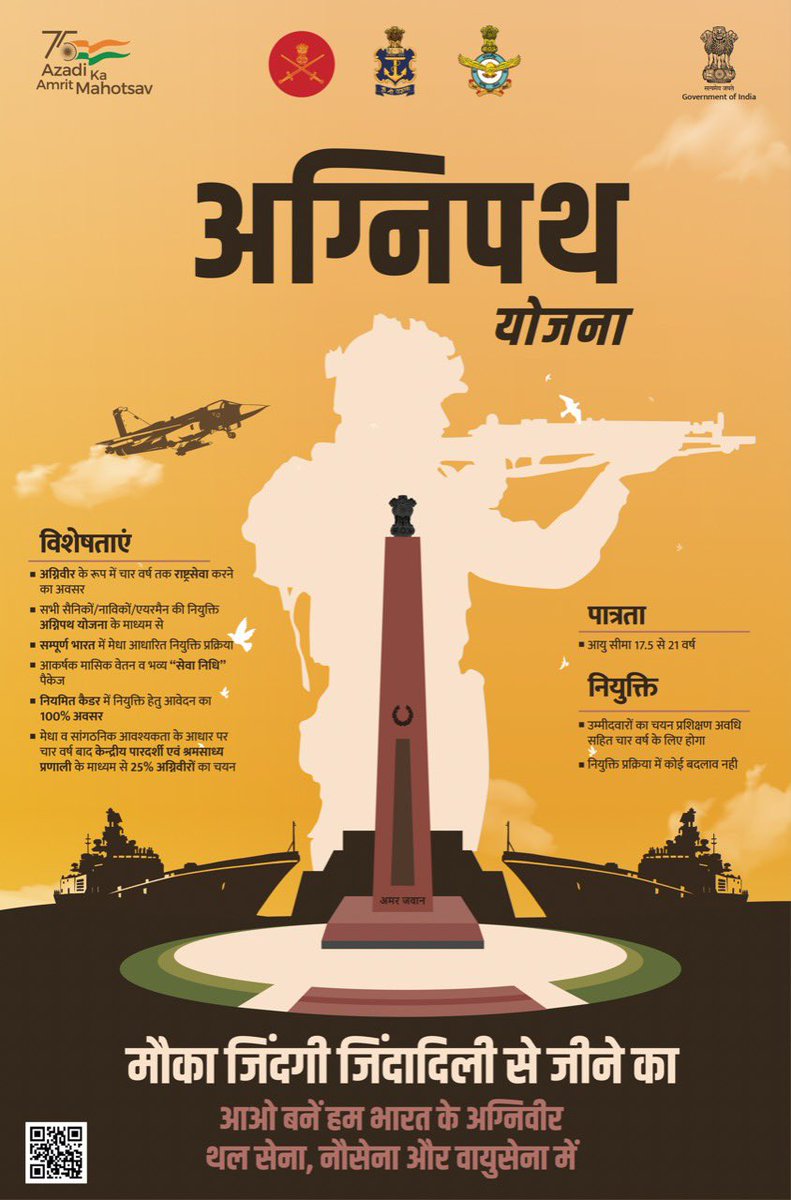 The ‘Agnipath’ scheme approved by the CCS chaired by Prime Minister Shri @narendramodi is a truly transformative reform which will enhance the combat potential of the Armed Forces, with younger profile and technologically adept soldiers. #BharatKeAgniveer | |||