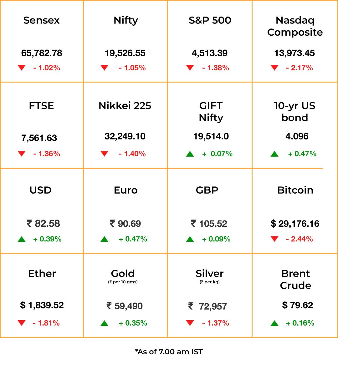 US markets were in shambles after the country lost its AAA rating from Fitch Ratings because of fiscal deterioration. Stocks and bond prices slid and the volatility index surged, while the government bumped up its public borrowing in Q3 2023 by more than it had estimated earlier.