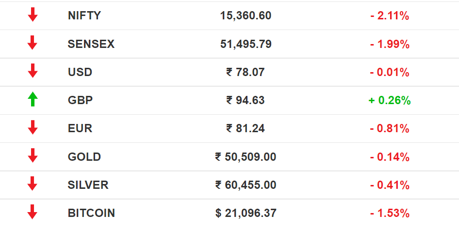 Stocks: Domestic benchmark indices declined sharply, ending at a fresh 52-week low. Fears of recession hit the global market after the US Federal Reserve hiked its interest rate by 75 basis points. This was mirrored at a global level. Hong Kong's central bank and Bank of England raised interest rates following Fed's latest move.