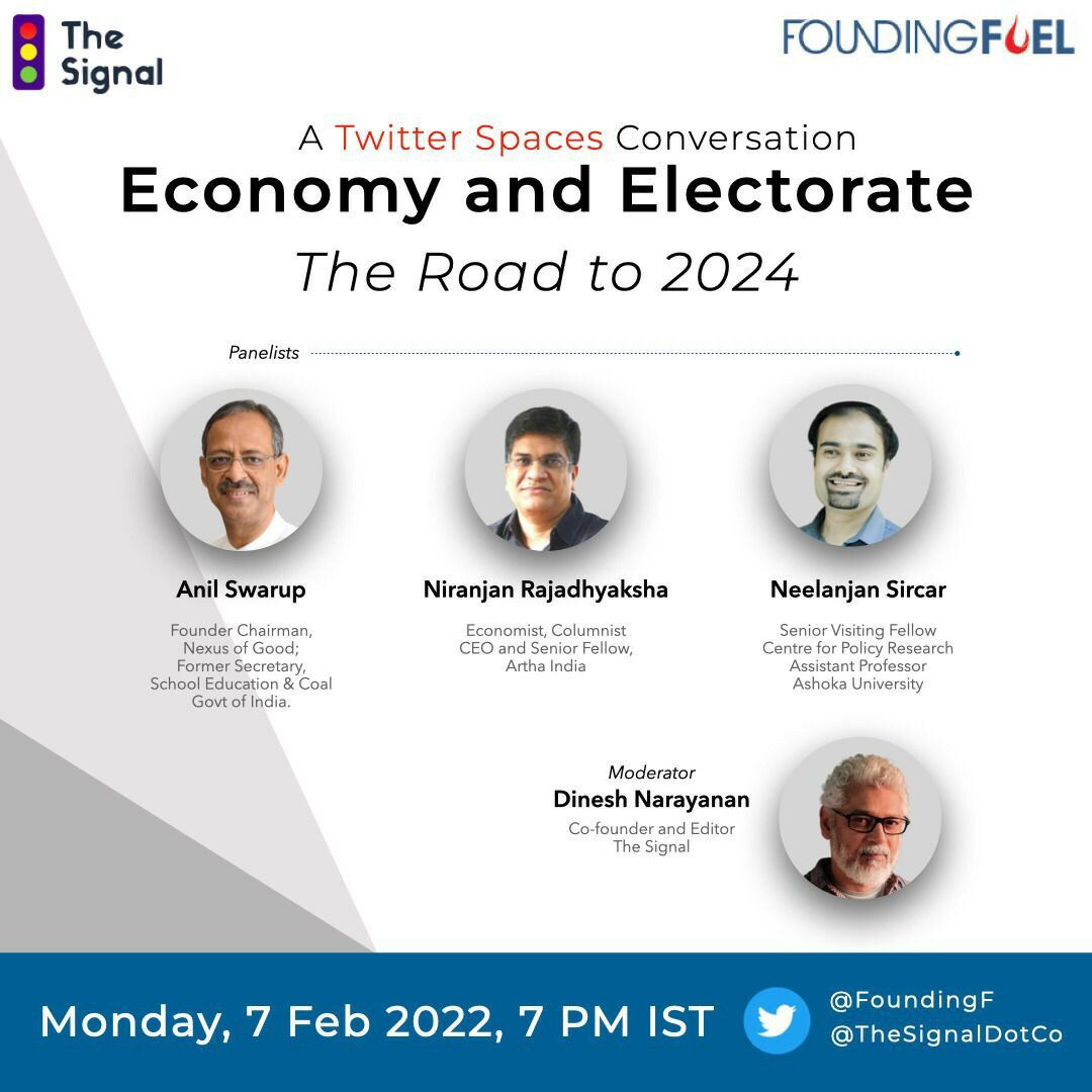 This evening, at 7 pm, The Signal will be partnering with Founding Fuel to host a Twitter Spaces session titled “Economy and Electorate: Road to 2024.”