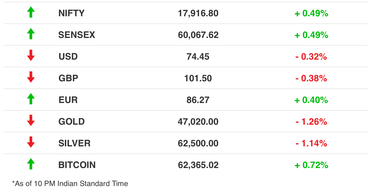 Stocks: After a losing streak, the Sensex and Nifty regained their mojo in muhurat trading, a special one-hour session on the day of Diwali when Lakshmi, the Goddess of wealth, is worshipped. Historically, indices have gained in 11 of the past 15 muhurat sessions. Meanwhile, in global markets, with the Fed taper calendar now public, the focus has shifted to other data such as corporate earnings.