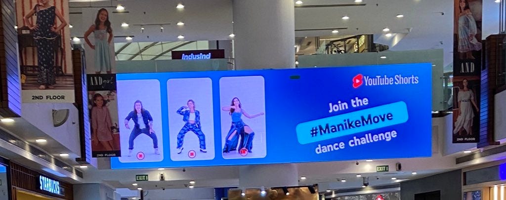 Sometime in late September, a curious call to action flashed in New Delhi’s Select CityWalk mall. Onlookers paused, watched, and moved. Some went with the flow and grooved. The call to action was an advertisement encouraging people to “Join the #ManikeMove dance challenge”. This was reminiscent of when TikTok was omnipresent in India—from smartphone screens to offline paraphernalia. Except, in this case, the ad belonged to the latest entrant in the short-video space: YouTube Shorts.