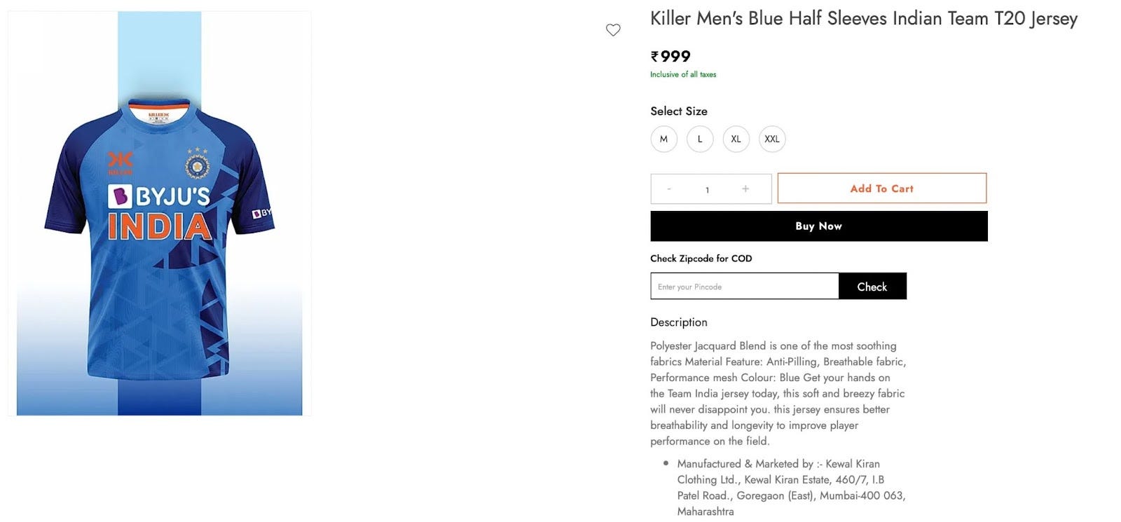 As for the merchandise royalty, the MPL Sports website isn’t selling any jerseys with the Killer Jeans logo. It only has merchandise with its own logo. Killer Jeans, meanwhile, has only put up one piece of BCCI merchandise on its website so far—a jersey that has some resemblance to the India T20 jersey worn by the players but doesn’t look exactly the same. It has the Killer Jeans logo and is manufactured by KKCL.