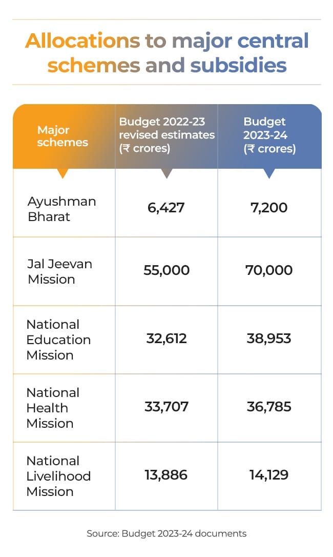 Health & education: Except for a digital library (not a quick turnaround idea when internet growth is stalling) for kids, these areas hardly got any money. In fact, flagship central schemes’ allocations have been slashed.