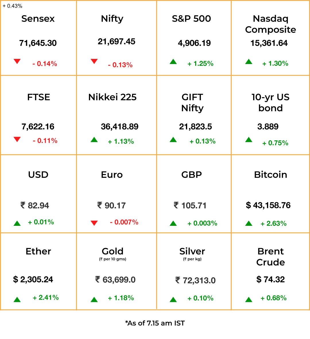 US equities bounced back on Thursday after tech giant Meta announced a dividend for the first time and a $50 billion share buyback plan. Retail major Amazon’s strong fourth quarter showing helped too. The positive sentiment in the US percolated to Asia too, with major indices trading in the green zone on Friday morning. The GIFT Nifty indicates a flat or lower opening for India.