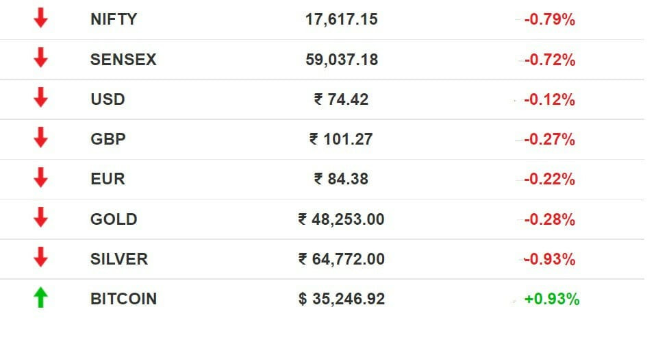 Stocks: Indian stocks continued their losing streak as investors took cues from a tech sell-off and anticipated rate hike in the US. Digital bellwethers Zomato and Paytm fell to their all-time lows. Key corporate earnings in India and a Fed meeting will likely dominate this week.