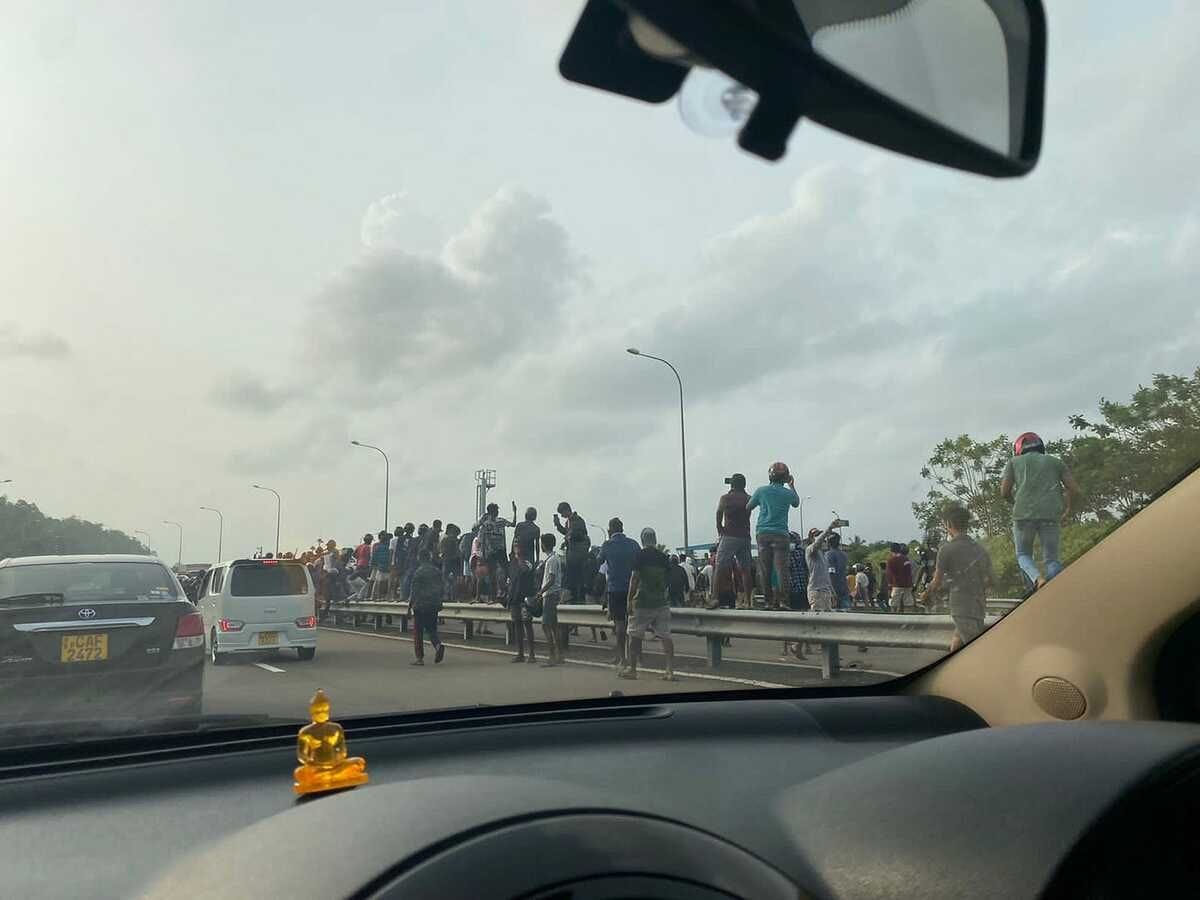 Close to Katunayake, towards the end of the expressway, two uniformed personnel stopped the car and told my driver to pull down the windows. “Why?” he asked. They said there was a check post ahead. I’d been to Sri Lanka during the war and expected police or army pickets. But this was a sea of people holding national flags and peering into the car to see if I was smuggling away any Rajapaksas or their backers. After making sure, I was not hiding any Rajapaksas, they waved me through, “you no issue. Myna issue. Go go.”