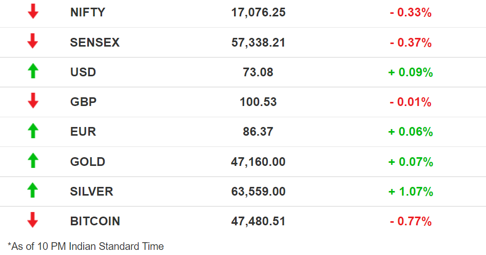 Stocks: Indian benchmarks touched record intraday highs before profit-booking saw them slip into the red towards the end of yesterdayâs trading. Realty stocks performed well, while those in the metal and IT sectors came under selling pressure. Global cues remain strong with many central banks playing it cool in the face of rising inflation.