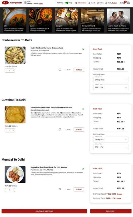 Zomato isn’t the first to offer the service. Postcard, The State Plate, Food Memories, and Delight Foods deliver regional specialties ranging from murukku to Gobindobhog rice. Their product categories, however, are limited to pickles, staples, and packaged sweets and snacks–items that last much longer than prepared food. This means Zomato is competing with JustMyRoots (JMR) and Tastes2Plate.