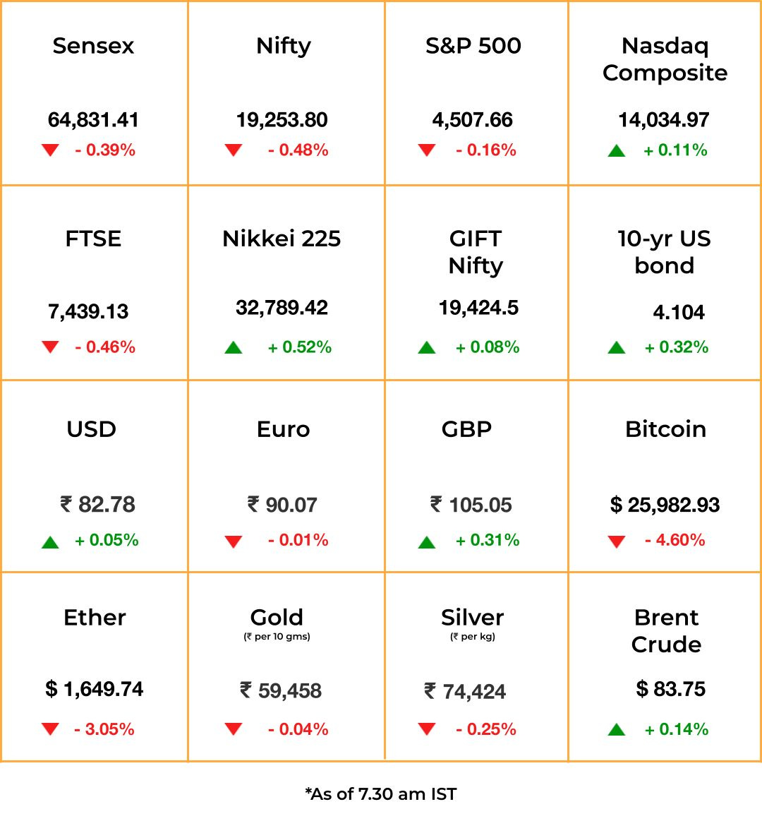 Stocks & economy: Adani Group stocks took a collective beating, losing about 3.5% or over $4 billion after more revelations hinted at regulatory failure in properly investigating alleged stock manipulation by promoter entities (read story below).