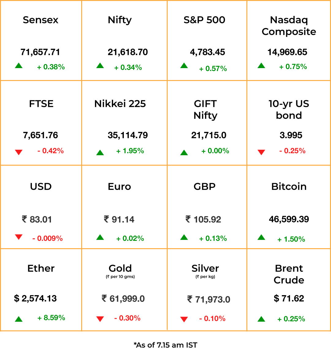 Stocks & Economy: Cryptocurrencies got a rocket-fuel boost on Wednesday when the US Securities and Exchange Commission allowed exchange-traded funds tracking Bitcoin for the first time. The regulator cleared 11 applications, including that of the world’s biggest asset manager BlackRock. The move comes a day after its X (formerly Twitter) handle, which it claimed was hacked, posted the same info. The move is seen as a gamechanger for Bitcoin and some expect upwards of $50 billion to flow into it this year itself.
