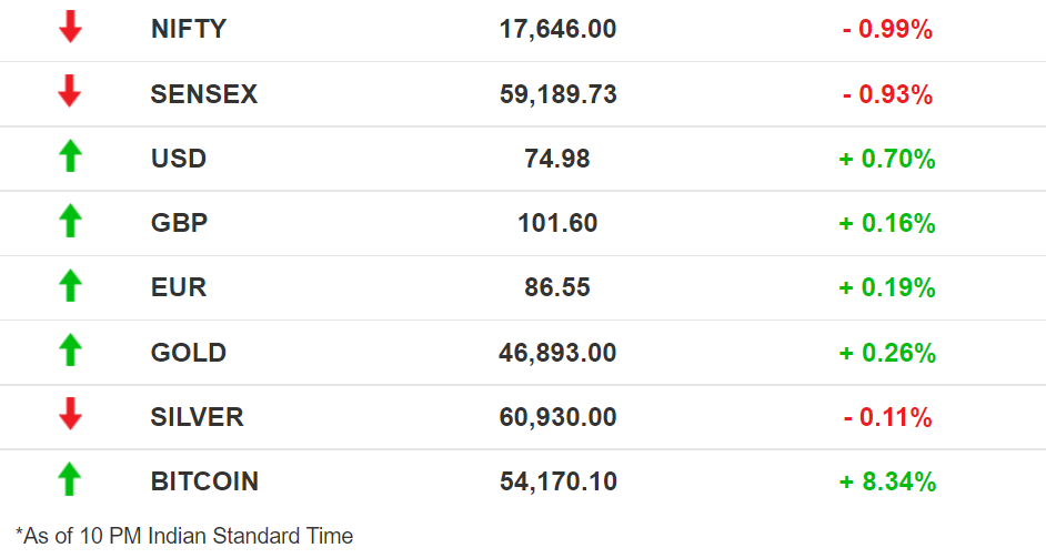 Stocks: Indian benchmarks continued their recent tendency of making up their minds on which direction to head post midday. Yesterday, they chose downwards and closed nearly one percentage point lower each. All sectoral indices closed in the red.