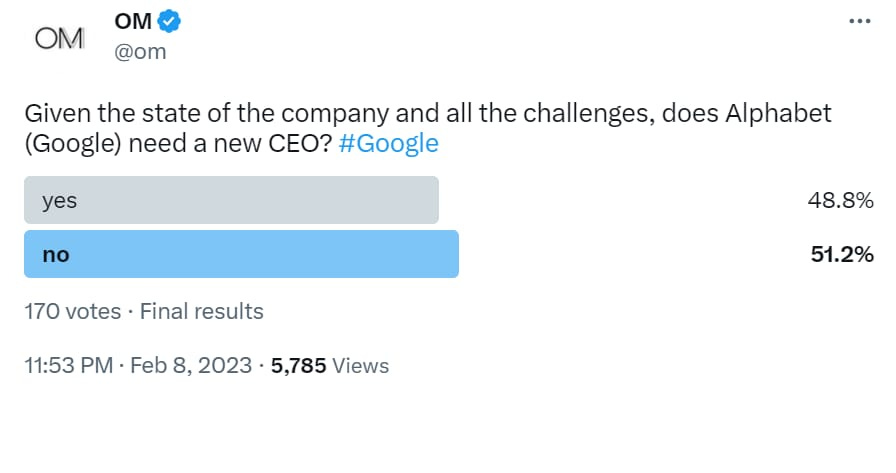 Facts: That Google was fumbling was apparent even when its parent Alphabet was posting record earnings, which kept Wall Street happy. That changed when a silly mistake by Bard, its much-touted ChatGPT-challenger, wiped out $100 billion in market value in a single session and put Pichai in the spotlight.