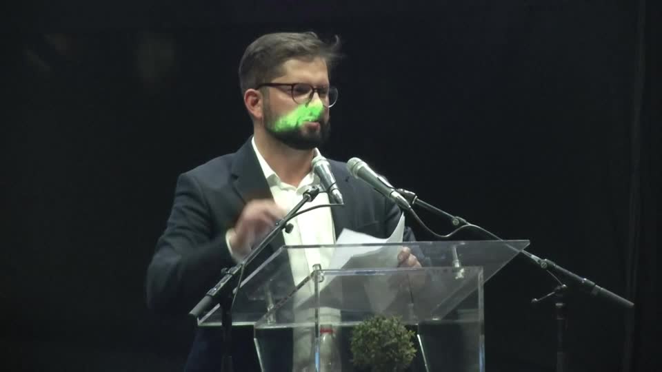 Chile's president-elect Gabriel Boric was targeted with a green laser pen during his victory speech in Santiago. It is not clear whether Boric noticed the laser pen, and his campaign team has not commented on the incident reut.rs/33CVWjH | |||