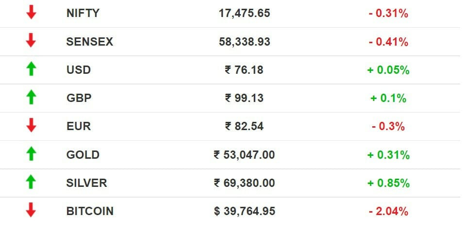 Stocks: Benchmark indices had a fall for the third day in a row because of weak global cues and profit booking. The release of key inflation data also deterred investors. Prices for Brent crude rose to $105.23 per barrel after Russia continued its war on Ukraine.