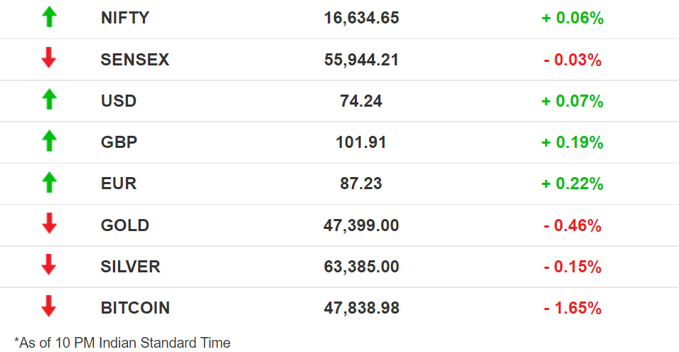 Stocks: Benchmark indices touched new heights but closed below them on the back of profit-booking. Trading was largely bound to a narrow range, with all sectoral indices seeing a change of less than 1%. Broader markets displayed optimism by outperforming the benchmarks for the second day running as they await the outcome of the US Fed meeting.