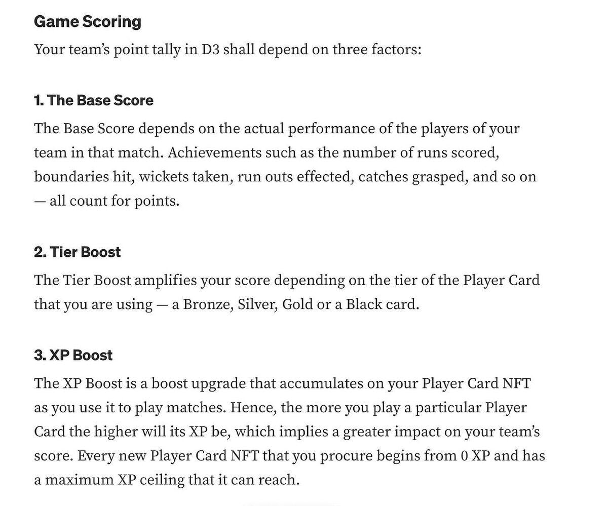 Rario’s D3 is particularly skewed towards a game of chance because it allows you to pick teams of only three players. And what’s more, one of those three players need not even be playing in that match or tournament. D3 allows you to pick a card of a retired player as a proxy for a current player. So, for example, if you own a Tendulkar card, you can use it in place of any other India batter.