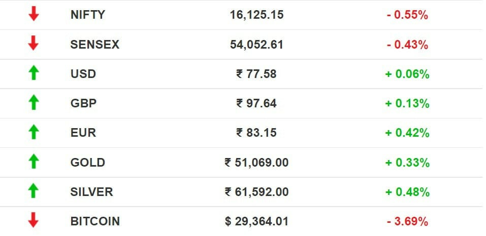 Stocks: Benchmark indices erased early gains to end lower for the second straight session. Rising interest rates and fears of soaring inflation continued to haunt investors. Last-mile logistics delivery giant Delhivery jumped 10% from its listed price. Oyo will settle for a lower valuation of $7 billion to $8 billion when it decides to launch its IPO later this year.