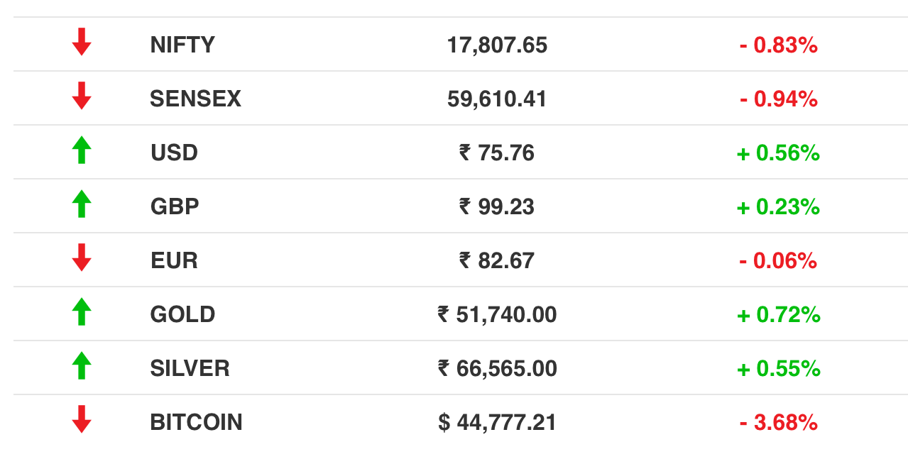 Stocks: Indian markets saw a sell-off in line with global peers which were spooked by the US Fed’s hints that it was planning steeper interest rate hikes. Talk of the US and the EU imposing more financial sanctions intensified even as Russia inched closer to a dollar-debt default. The RBI will unveil its monetary policy on Friday.