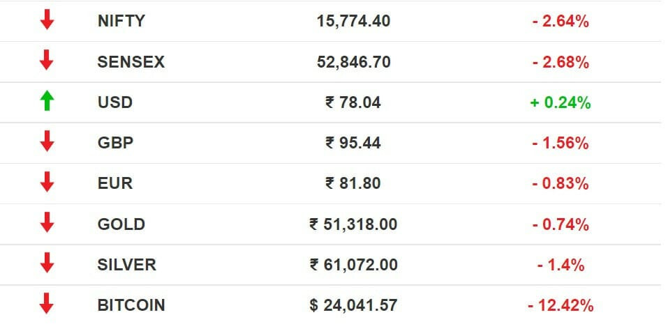 Stocks: It was a Black Monday in Dalal Street as fears of aggressive interest rate hikes by the US Fed spooked investors. It didn't help that the US consumer price index surged to a 41-year high of 8.6%. All eyes are on Fed whose policy meeting begins Tuesday. Persistent FII selling, negative sentiments across global market, a weaker rupee and fresh Covid-19 wave in China dampened sentiments. Wall Street entered bear-market territory after the S&P 500 dived 3.9%.