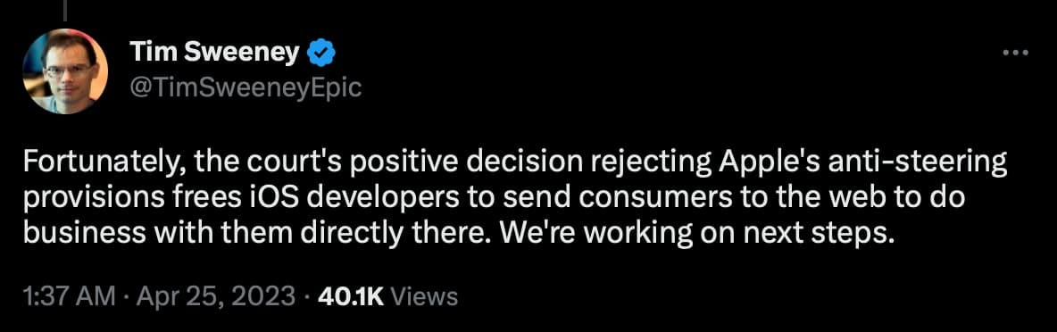 Caveat: In a relief to Epic, the court found Apple’s “anti-steering” conduct—aka not allowing Fortnite players to use non-Apple payment systems to avoid a 30% commission—unlawful. Meaning iOS developers can link to other payment options if there are no further appeals.
