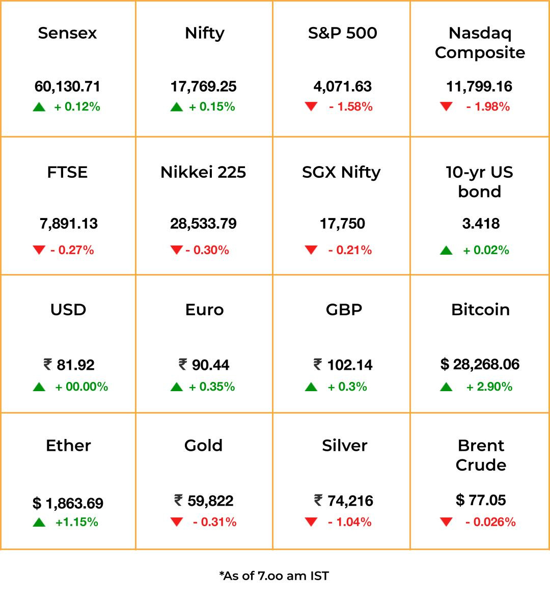 Stocks & economy: Indian equities may fall today, breaking a two-day winning streak, as fears of a banking crisis resurfaced and consumer confidence sank to a nine-month low in the US.