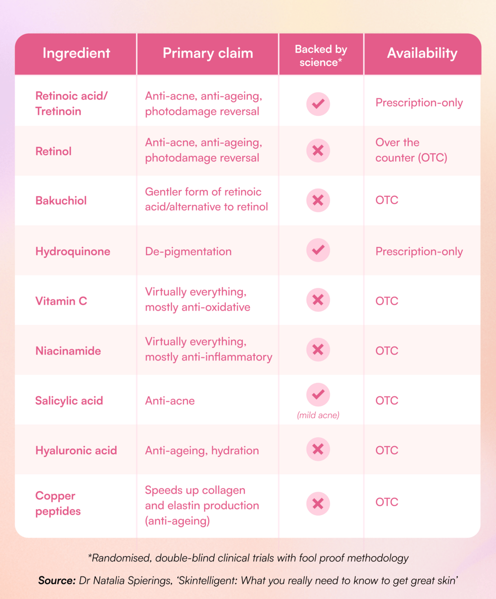 The question mark over some actives and brands’ tendency to cosplay as alchemists (rather than learn basic chemistry) is compounded by the fact that there’s no consensus among dermatologists either. Take this 2016 paper published in the Indian Journal of Dermatology, which says there’s little to show how moisturisers work on Indian skin. So much for the mantra ‘cleanse, moisturise, and use sunscreen’. Then there's this article, which says no one knows what causes acne. And this, the only randomised, double-blind study on bakuchiol—which Dr Natalia Spierings faults for its methodology.