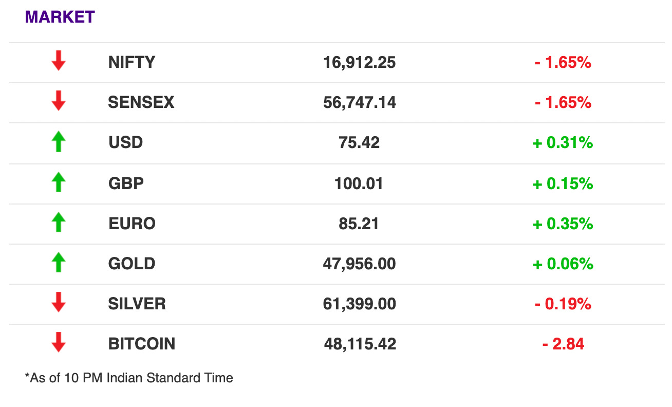 Stocks: Spooked investors continued to sell stocks pulling down major indices as Omicron infections rose. FMCG, auto, IT and pharma stocks were badly mauled. Travel curbs are returning and chances of lockdowns are increasing, threatening economic recovery.