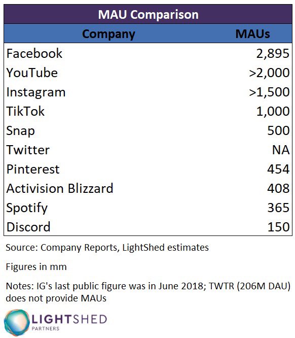 🔥 In the war for time, Tik Tok is now in an elite club with Google & Facebook #Bil#BillionMAUsPDATED with Snap disclosure h/t @TZM@TZM_TMTtpp | |||