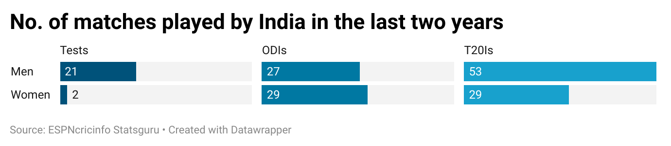 For one, the Indian women’s team hardly plays as many matches as the men’s team.