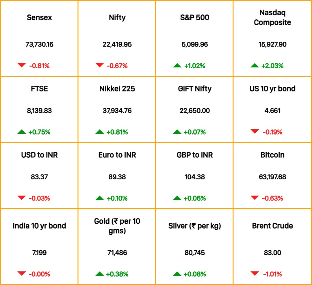 Stocks & Economy: Foreign portfolio investors sold Indian equities worth nearly $720 million in April. The sale came after a net inflow of over ~$4 billion in March. The Business Standard reports that the sell-off was likely triggered by juicy US bond yields, which have now reached 4.7%.