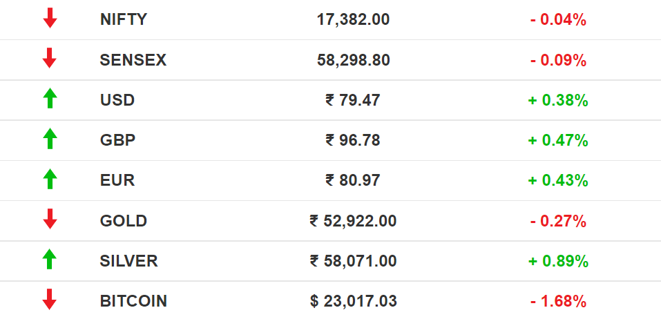 Stocks: Domestic indices ended lower, breaking their six-day streak. China's show of force in Taiwan made investors jittery. The Bank of England hiked interest rates by 50 basis points, the biggest increase in 27 years.