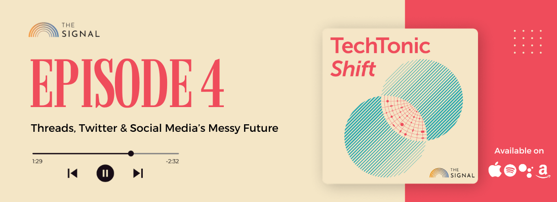 Faster than the speed of light: That’s how we’d describe the bumper-to-bumper developments in the virtual cage match between Elon Musk and Mark Zuckerberg. Within just 24 hours of launch, Meta’s Twitter competitor, Threads, amassed a whopping ~60 million users. Is this the end for Twitter? In this week’s episode of TechTonic Shift, hosts Rajneil and Roshni discuss the future of social media and interoperable platforms. New episodes drop every Saturday at 8 am. Available on Spotify, Apple, Google Podcasts, Amazon Music, or wherever you get your podcasts.