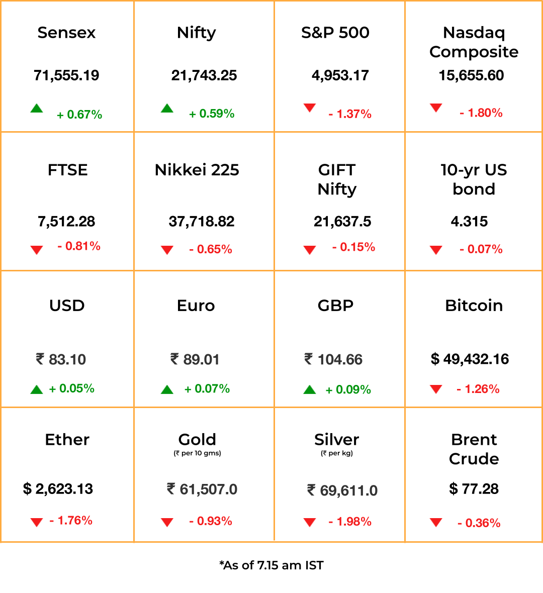 Downgraded: Global brokerage house Macquarie slashed its target price for Paytm by 57.7% to ₹275, citing “serious” risks of its customers leaving the platform amid increased regulatory scrutiny. The downgrade (at ₹275/share) would value the fintech company at $2.1 billion.