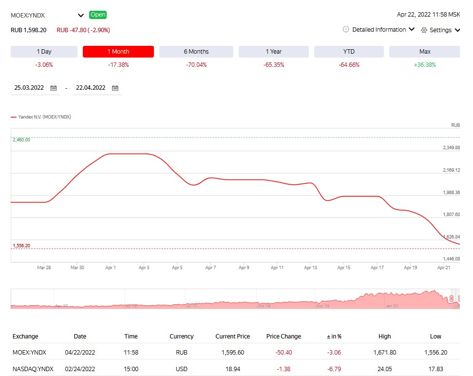 Its stock crashed almost 70% in the initial days of war. NYSE and Nasdaq suspended trading in stocks of certain Russian companies, including Yandex and Ozon. Trading at the Moscow Stock Exchange was suspended for one month.