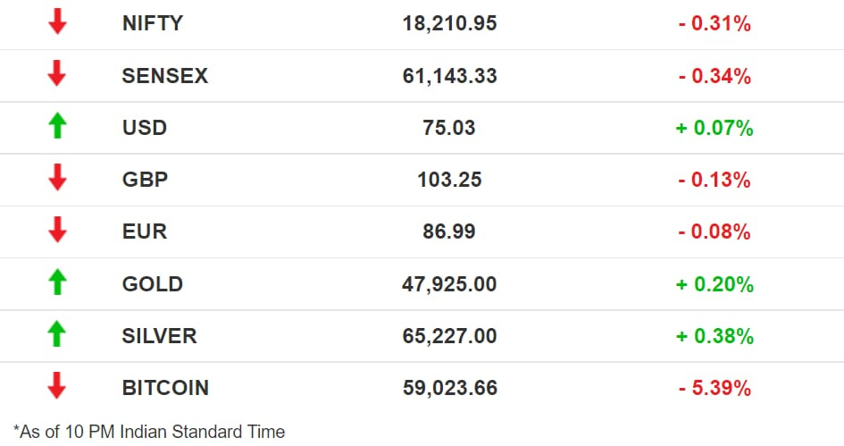 Stocks: Benchmark indices spent most of the day in the green before a late slide saw them close with losses. Worries over ‘stagflation’ have global markets on edge, and this uncertainty is expected to loom over upcoming trading sessions.